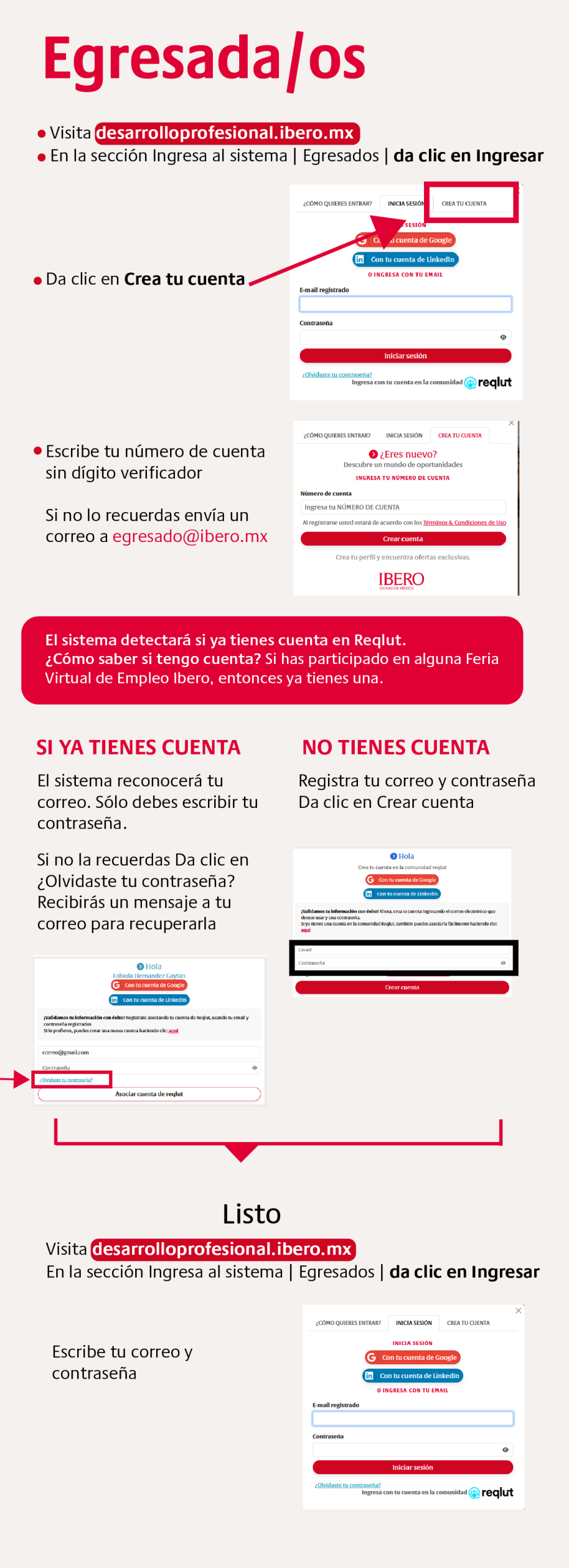 - Tu número de cuenta. Si no lo recuerdas manda un correo a egresado@ibero.mx o marca 55 5950 4173